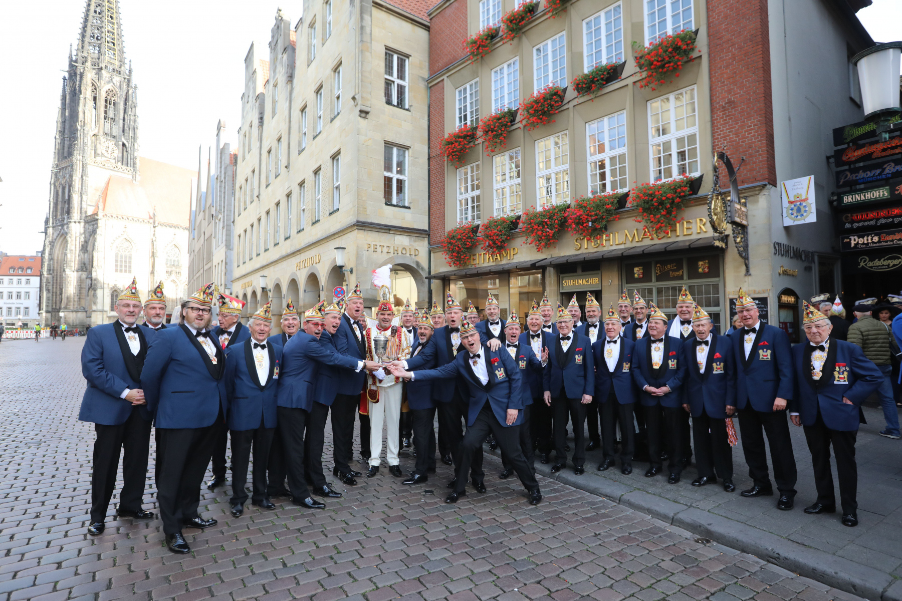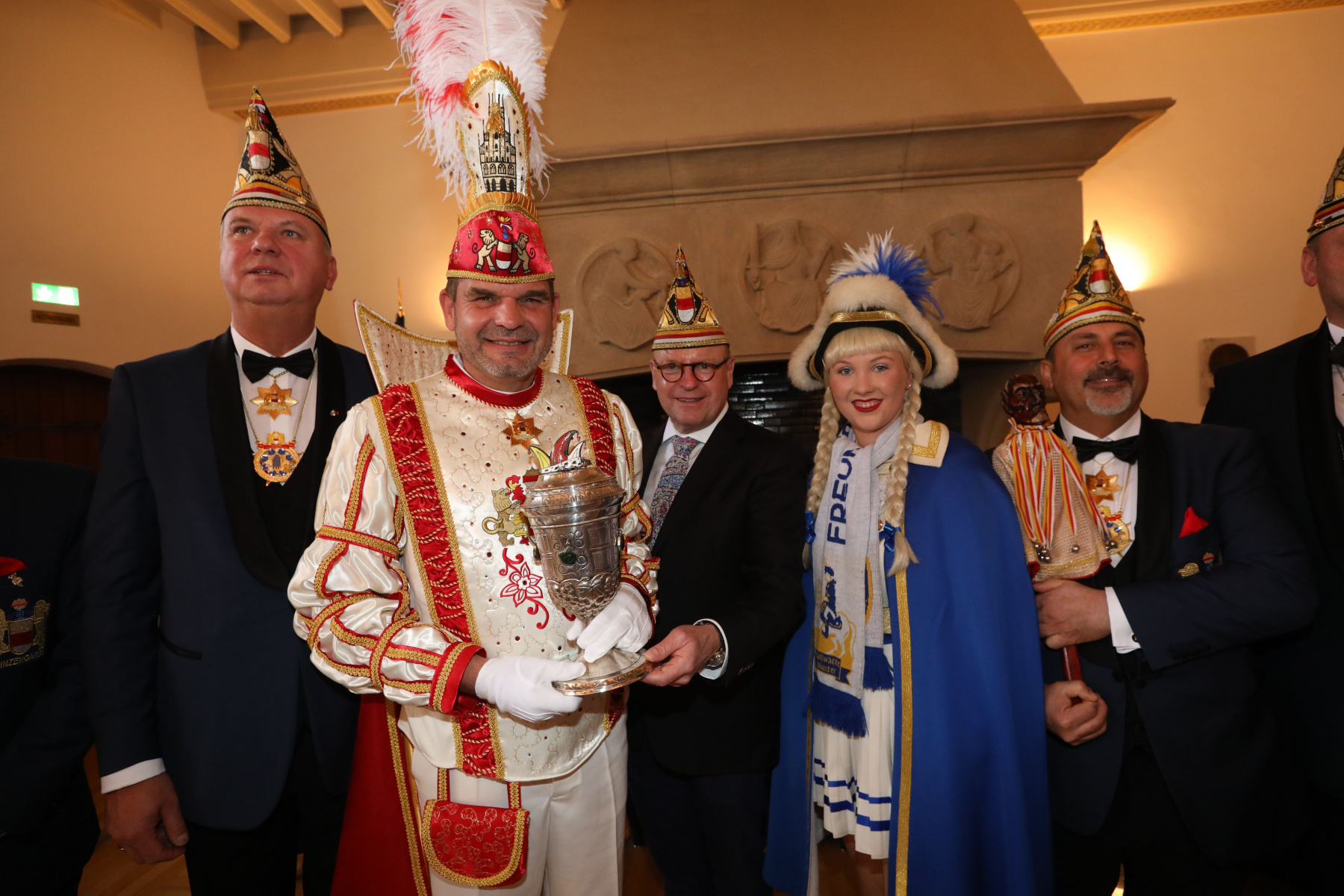 Aber die Neugier auf beiden Seiten war so groß, dass man Beschloss sich trotzdem zu treffen. So wollte der erste Bürger der Stadt wissen, ob Prinz Mario noch im Amt sei. Umgekehrt fragte sich auch Prinz Mario, ob Markus Lewe noch im Amt ist. So trafen sich beide in illustrerer Runde im Historischen Rathaus unserer Stadt Münster. Prinz Mario I betonte, dass er mit seinen Adjutanten, der Prinzengarde und allen Narren in Münster am Sonntag, 19.02.2023 Markus Lewe den Schlüssel zum Rathaus zu entreißen. Oberbürgermeister Lewe wiederum bezweifelte, dass Prinz Mario I dies schaffen wird. Er lobte Mario und seien Adjutanten, dass sie es sich zur Aufgabe gemacht haben, den Menschen in schweren Zeiten Freude und Frohsinn zu bringen.